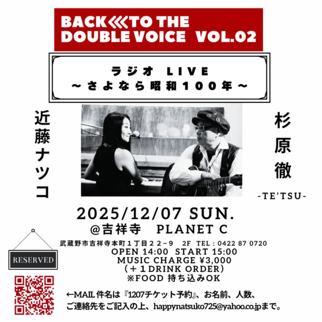 BACK <<< TO THE Double Voice Vol.2 ラジオLIVE~さよなら昭和100年~@吉祥寺 Planet C