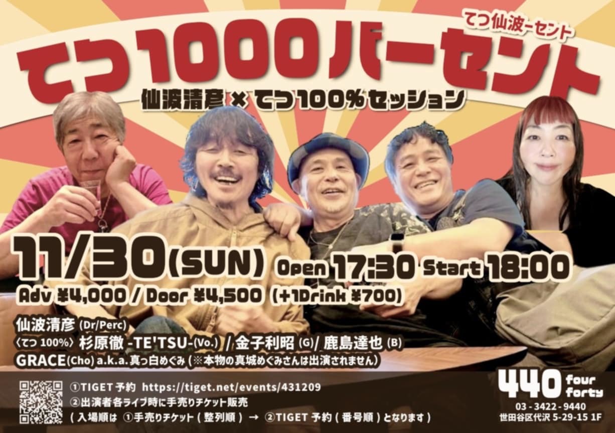 ◇出演:てつ100% 杉原徹(Vo.) 鹿島達也(B) 金子利昭(G)