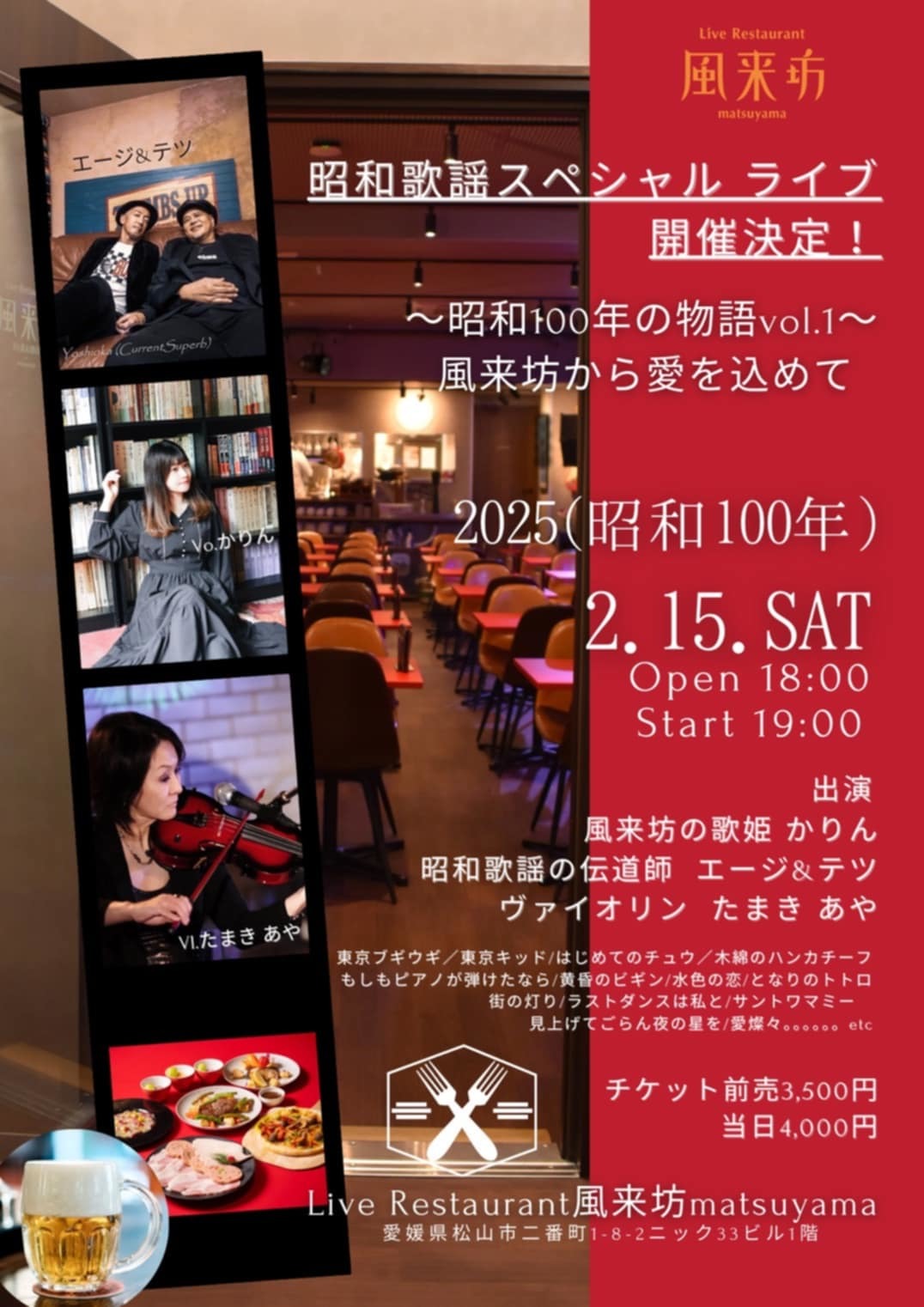 ご予約は、【ライブの日付・氏名・人数】を明記の上